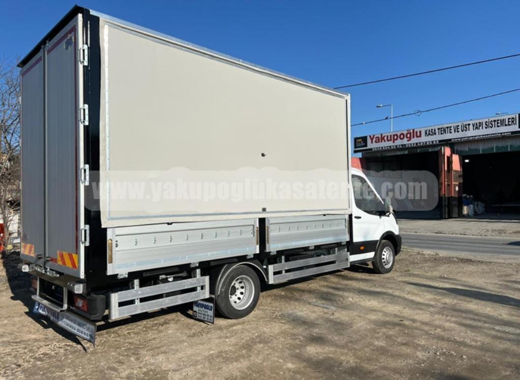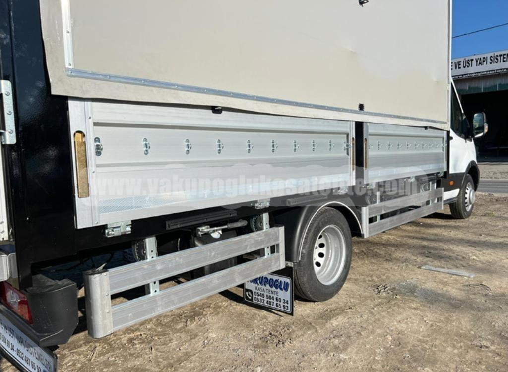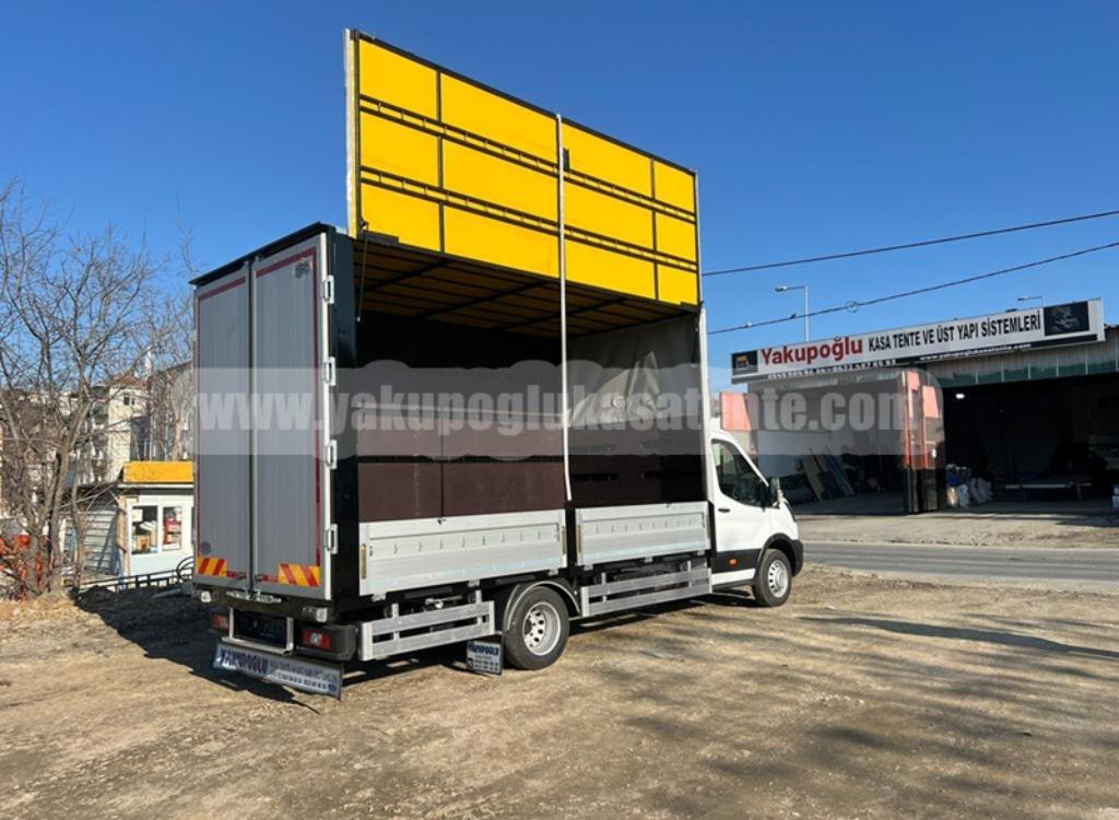 Firmamız Tarafından Tamamlanan Ford Transit Kamyonet Kasası ve Tentesi; Özel Sistem Alüminyum Kapaklı Amortisör Açılır Sistemli Tenteli Kasa Çeşitlerimizden Görseller Paylaşılmıştır.